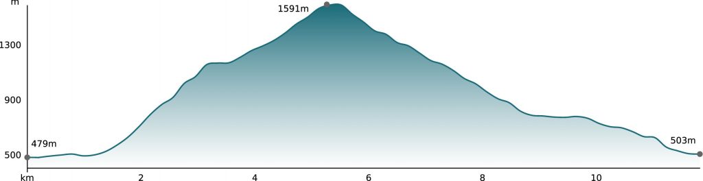 Es werden An- und Abstiege bis ca. 1.100 hm bewältigt bei bis zu ca. 7 Std. reiner Gehzeit ohne Pausen.