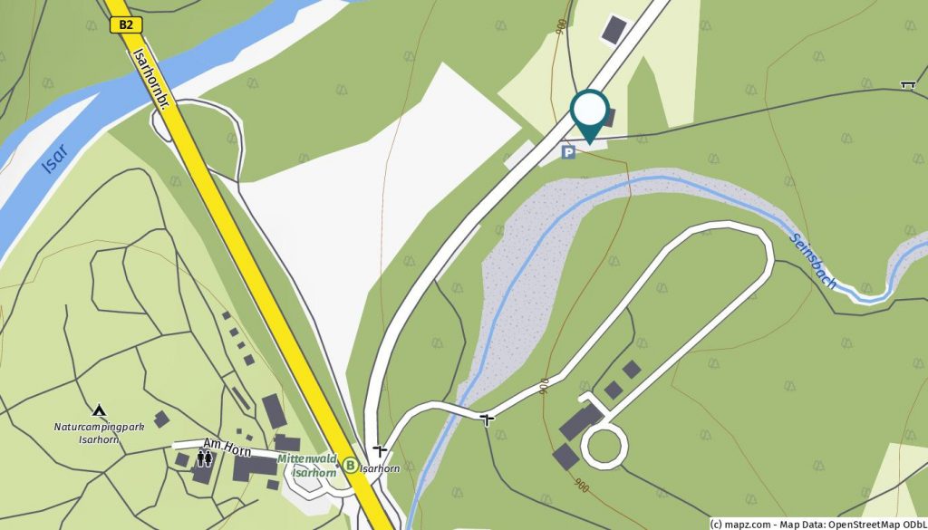 Endpunkt: Parkplatz am Seinsbach bei Isarhorn nördlich von Mittenwald